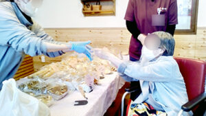 最後に、ご利用者様全員に福が訪れることを願い、参加された皆様へ豆の入った手作りのプレゼントをお渡ししました。